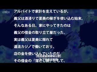 簡介: 突如其來的背叛和悲劇。等待母親回家的女兒的命運是…?和不是親生父親的繼父誠一一起生活的藤村夏美。因為母親入獄而失業,靠打工支撐家計,但繼父卻沉溺於酒精,還把夏美的收入花光。就在那樣的某一天,來到家裡的是繼父的債務催收人員。其實繼父瞞著夏美在非法賭場工作,而且把店裡的錢花光了。為了「償還」那筆債務,繼父打算把夏美賣掉。